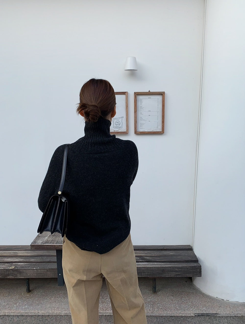 Adoptez un style à la fois décontracté et élégant avec ce pull col montant en maille douce.