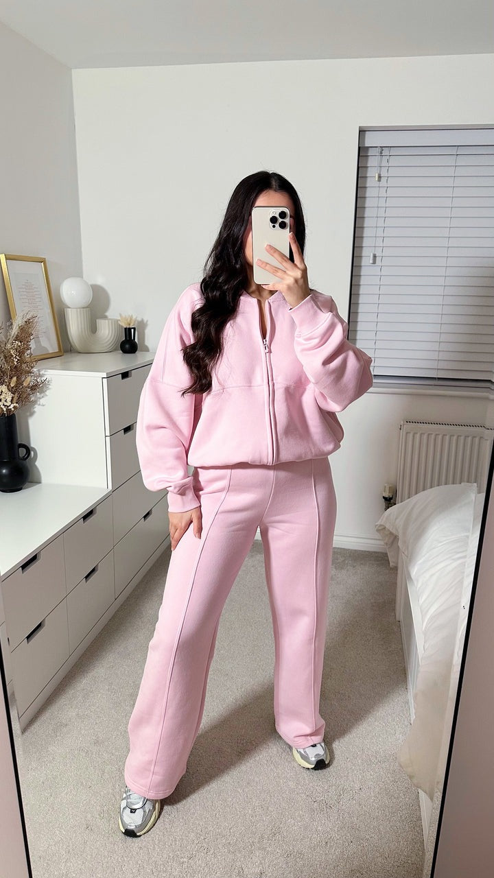 Alliez confort et style avec cet ensemble deux pièces qui sublime votre quotidien. Conçu avec une veste zippée élégante et un pantalon ample à taille élastique, il offre une coupe flatteuse et stylée, parfaite pour toutes les occasions.